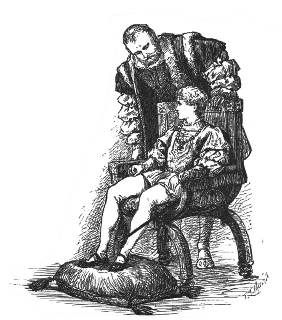 汤姆被带到了一间从未去过的金碧辉煌的大厅中,坐在豪华舒适的椅子上。跟随他而来的哈弗特伯爵以及侍从们,都笔直地站在他的身旁不动,汤姆觉得很过意不去,一个个地请他们坐下,跟拜托似的。