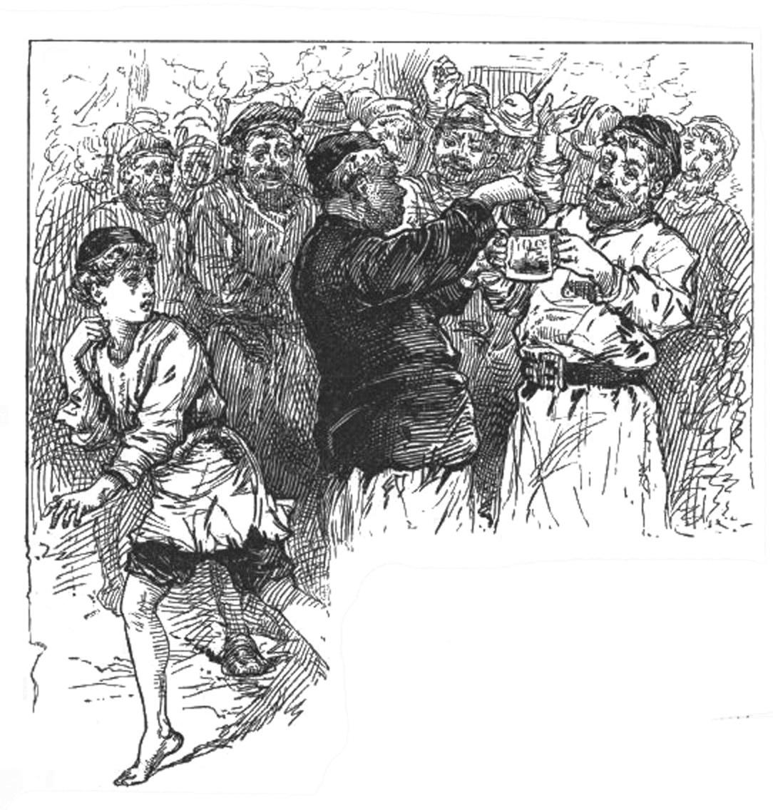 喝得酩酊大醉的群众们,看到市政厅的门口出现了一个“小疯子”,满口胡言乱语,都不禁笑得前俯后仰。