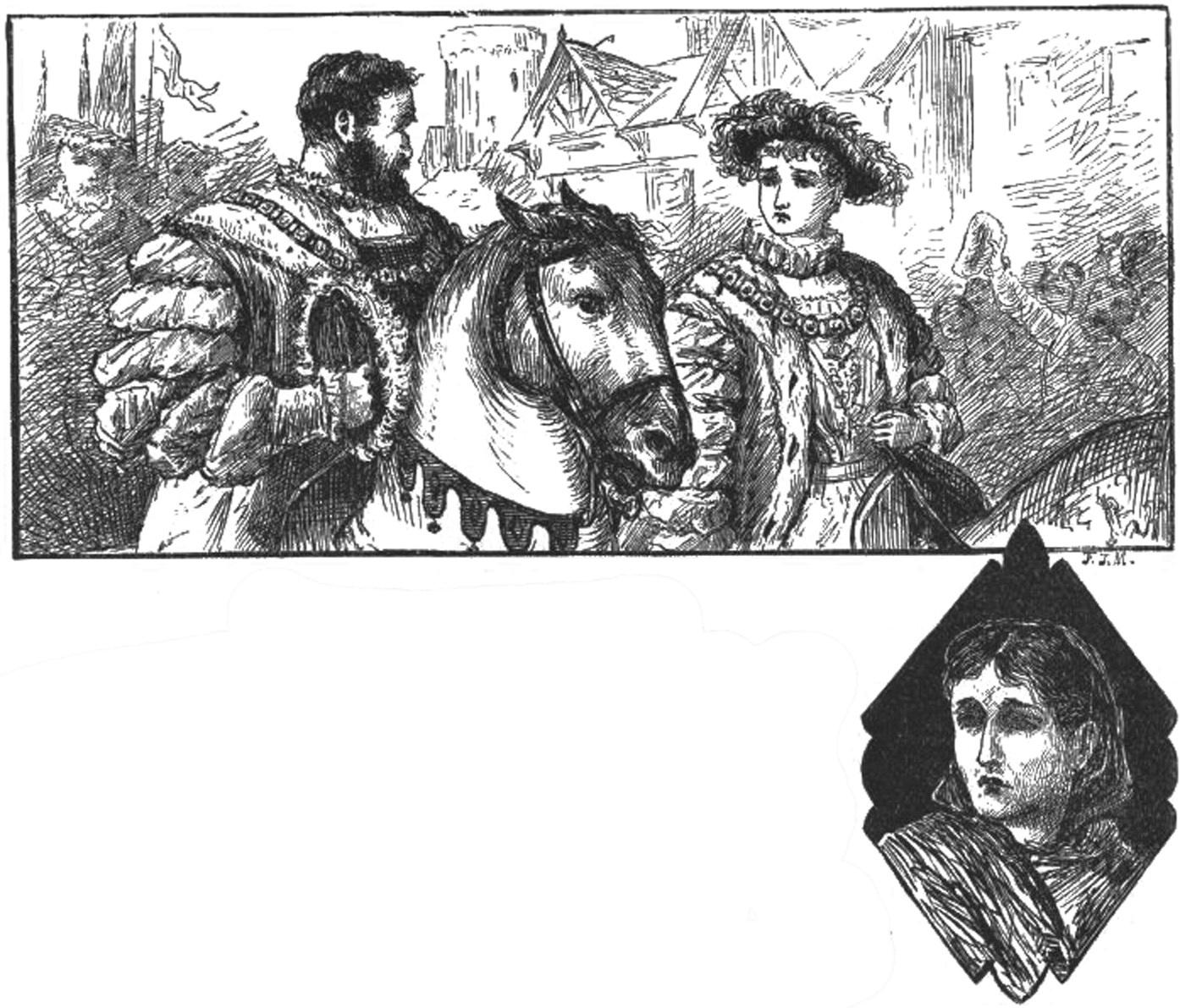 不过,因为周围十分嘈杂,所以没有一个人能够听清汤姆母亲的喊叫声。因为卫兵迅速赶过来,想将这个老妇人拖走。一瞬间,怒吼声、铠甲与皮靴的摩擦声、马蹄的嗒嗒声等,乱成一片。能够听清楚的,只有卫兵们大声怒骂汤姆母亲“哪里来的疯婆子,赶快把她拖走!”的声音。