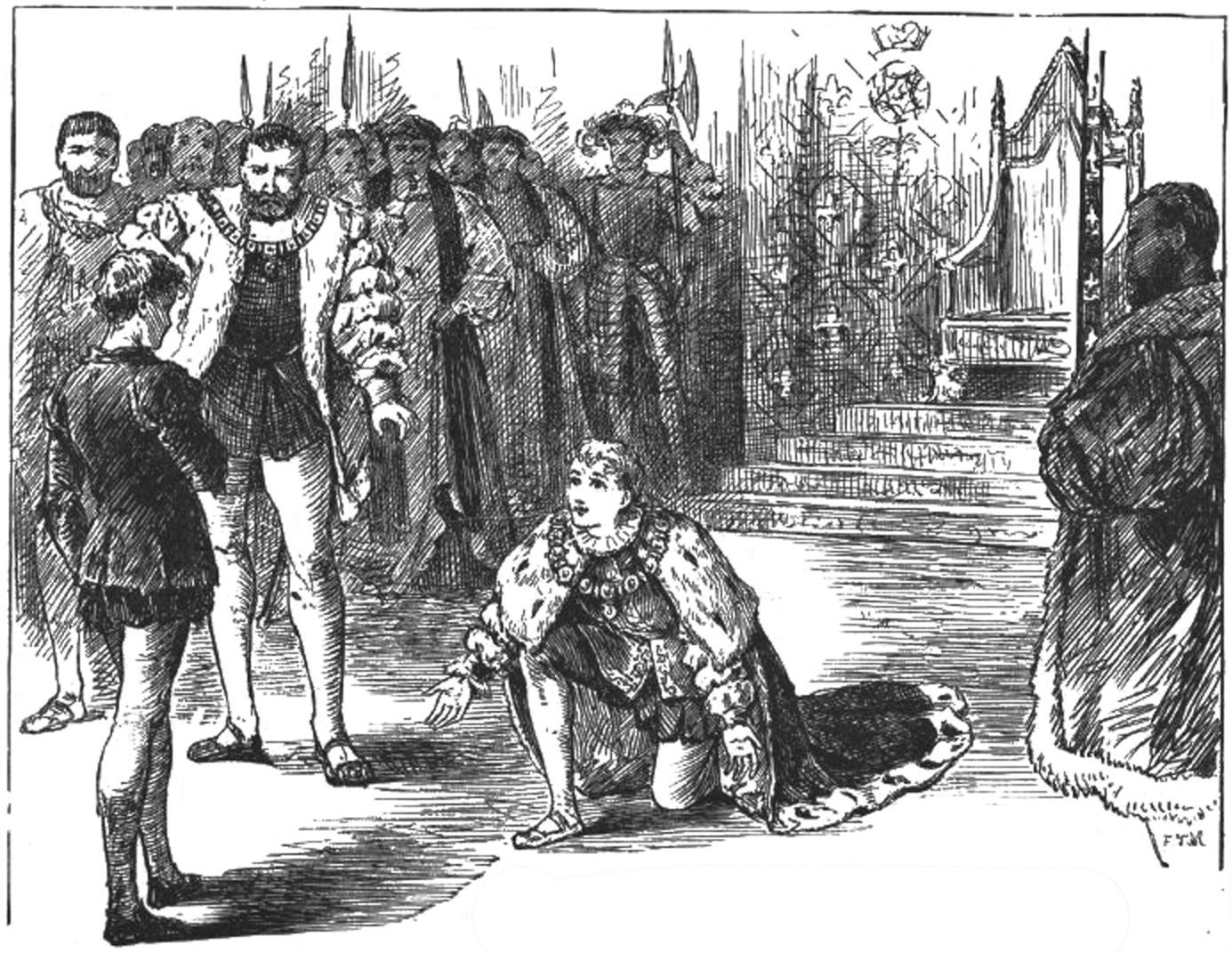 天啊,在王冠即将离开大主教的手的那一瞬间,怎么会发生如此巨大的变故呢?现在大家都有些不知所措,无法判断谁是谁非。